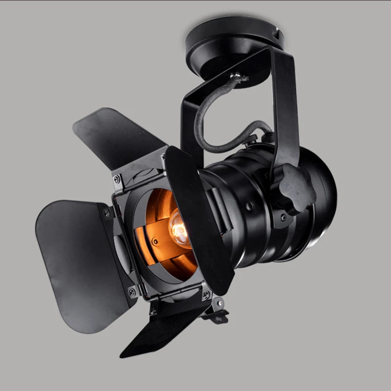 Винтажный Точечный светильник E27, светодиодный светильник на рейку, промышленный светильник, 4-створчатая Ретро лампа для двери сарая, магазина одежды светильник для бара