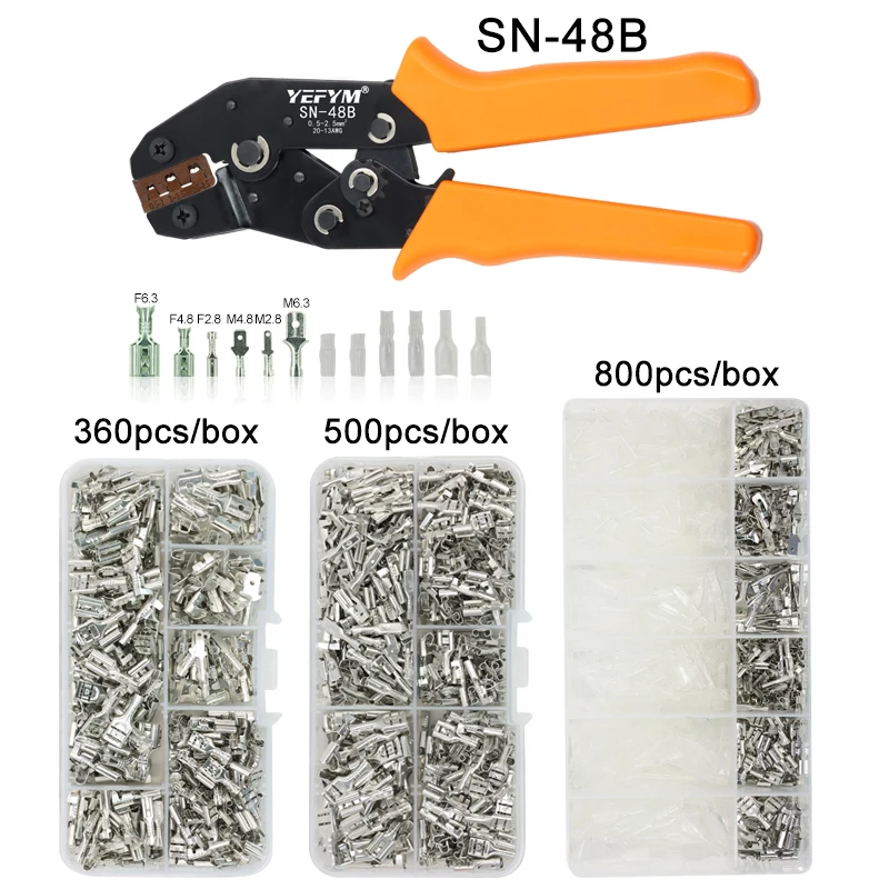 SN-48B обжимные плоскогубцы 0,5-2, 5 кв. Мм, высокоточные губки с язычком 2,8 4,8 6.3 автомобильные клеммы набора проводных электрических ручных инструментов