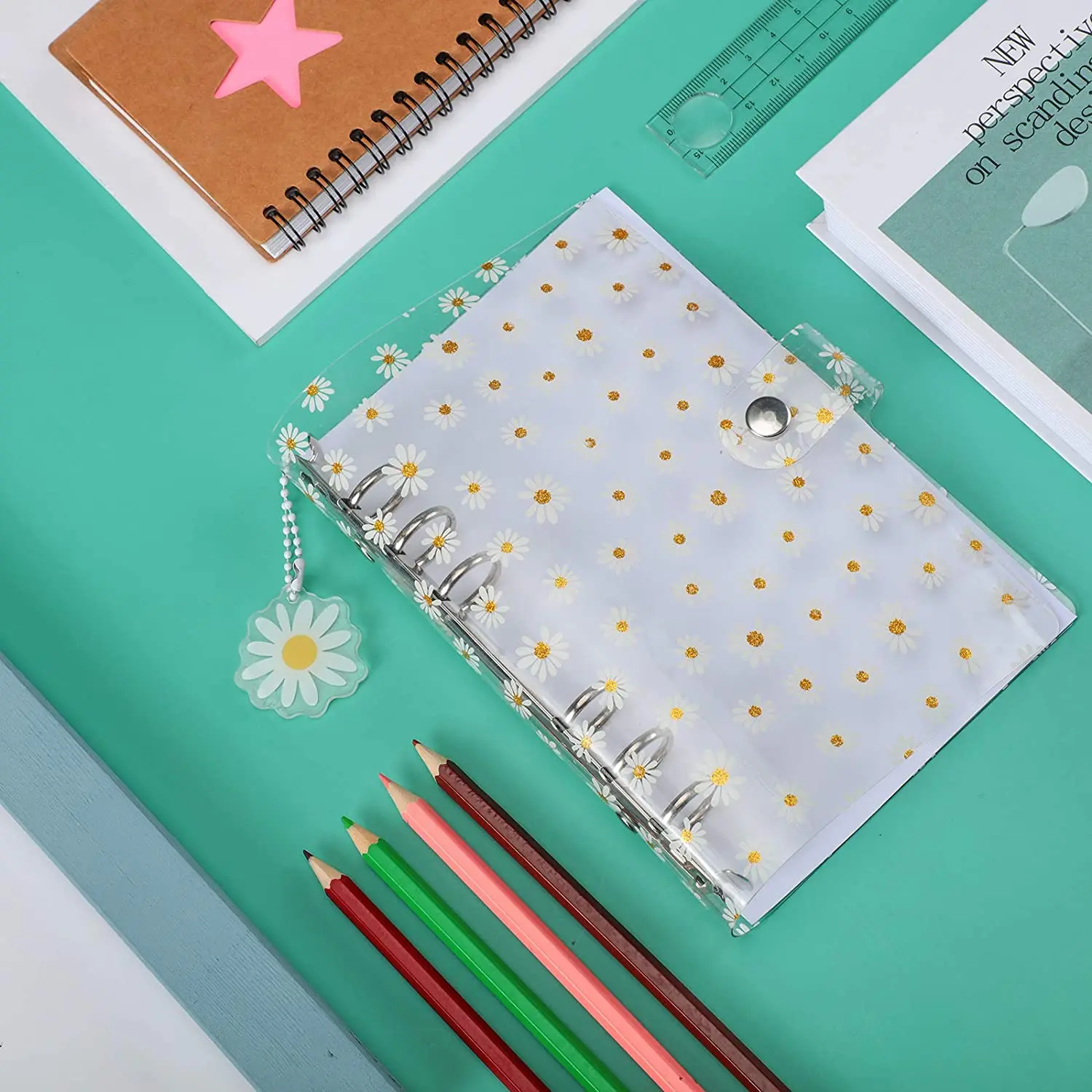 Милый маленький блокнот с маргаритками A6a7, прозрачный, 6 колец, б...