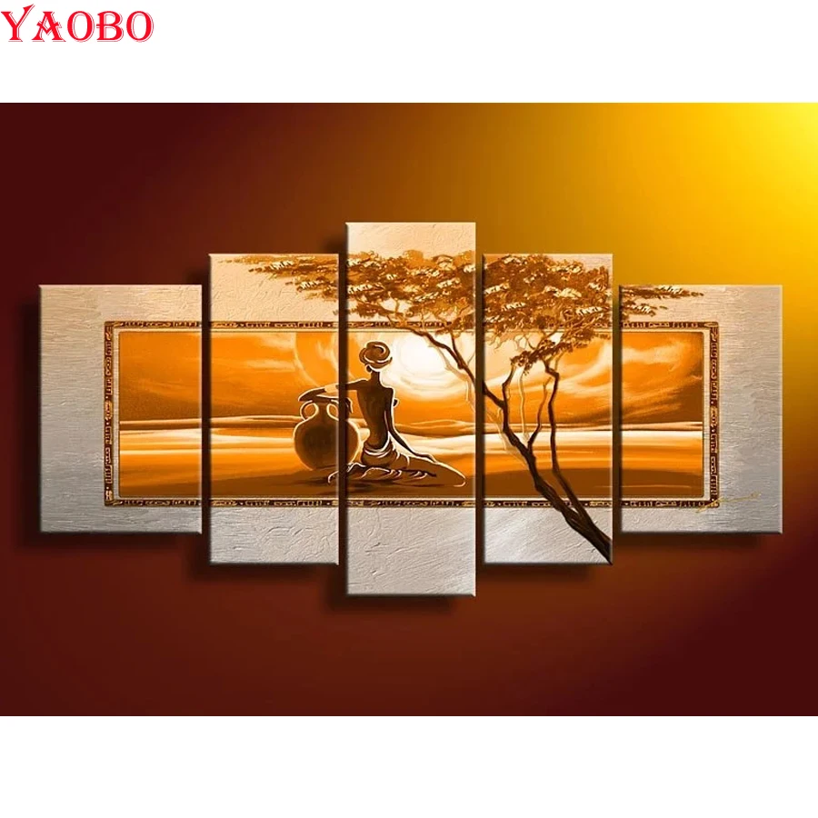 5 шт. DIY Алмазная картина полностью квадратная круглая Африканская женщина закат пейзаж вышивка украшение для дома алмазное искусство