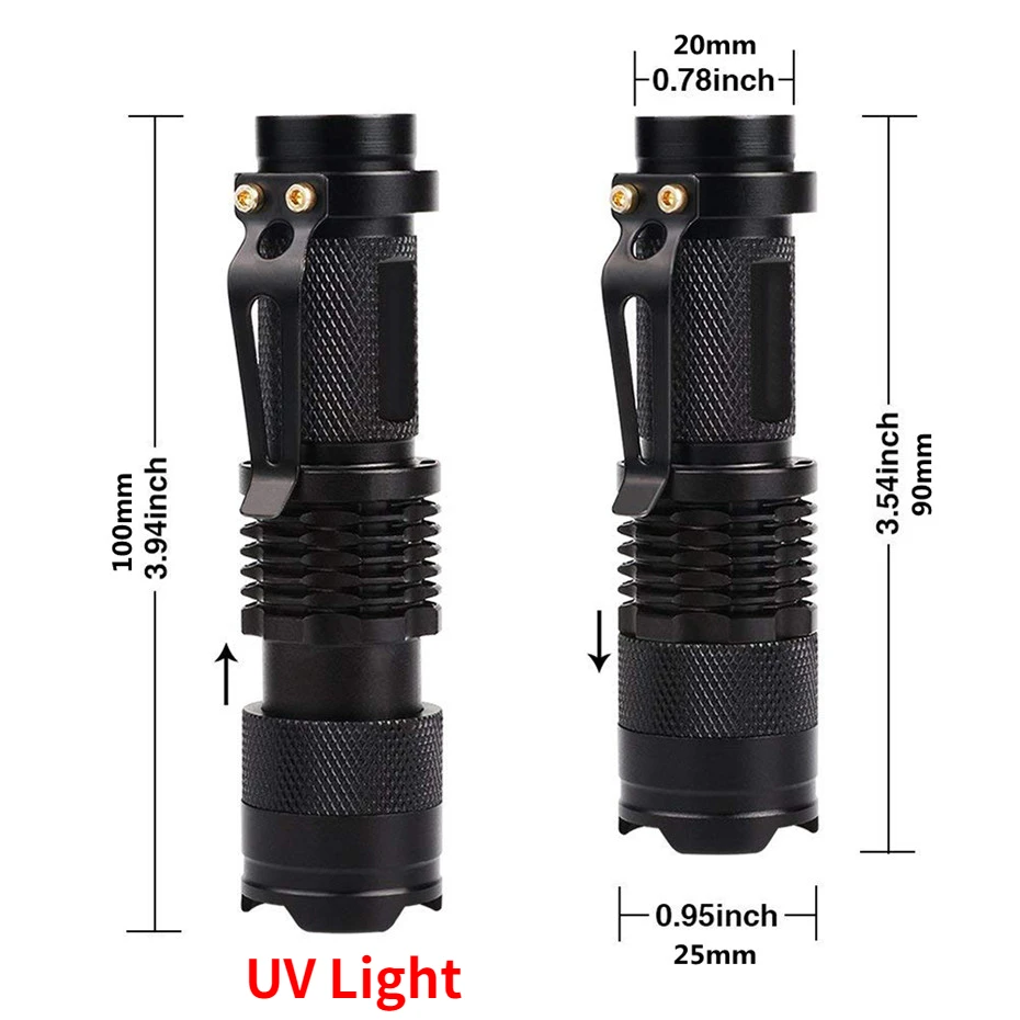 Светодиодный ультрафиолетовый фонарик с функцией масштабирования, миниатюрный УФ-светильник для обнаружения пятен мочи животных, светильник для охоты на скорпионов