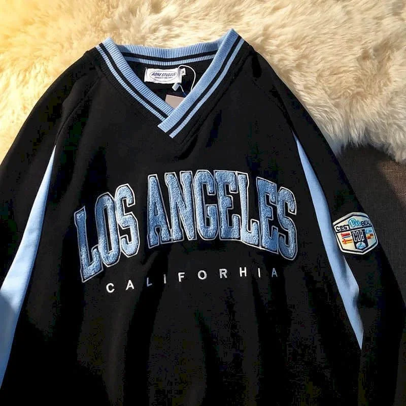 Винтажная свободная толстовка с буквами и V-образным вырезом, женские топы, уличный Повседневный Топ с длинным рукавом для пар, спортивная одежда для подростков, весенняя одежда бойфренда
