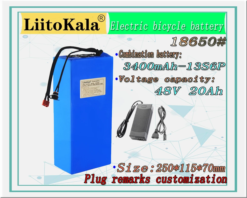 Литиевый аккумулятор LiitoKala 48 В, 20 А ч, 48 В, 20 А ч, 1000 Вт, для электрического велосипеда, со штекером 20 А BMS XT60, вход тока 56,4 в