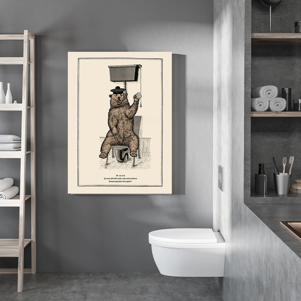 Плакат абстрактный на холсте с изображением ворчущего медведя, пить...