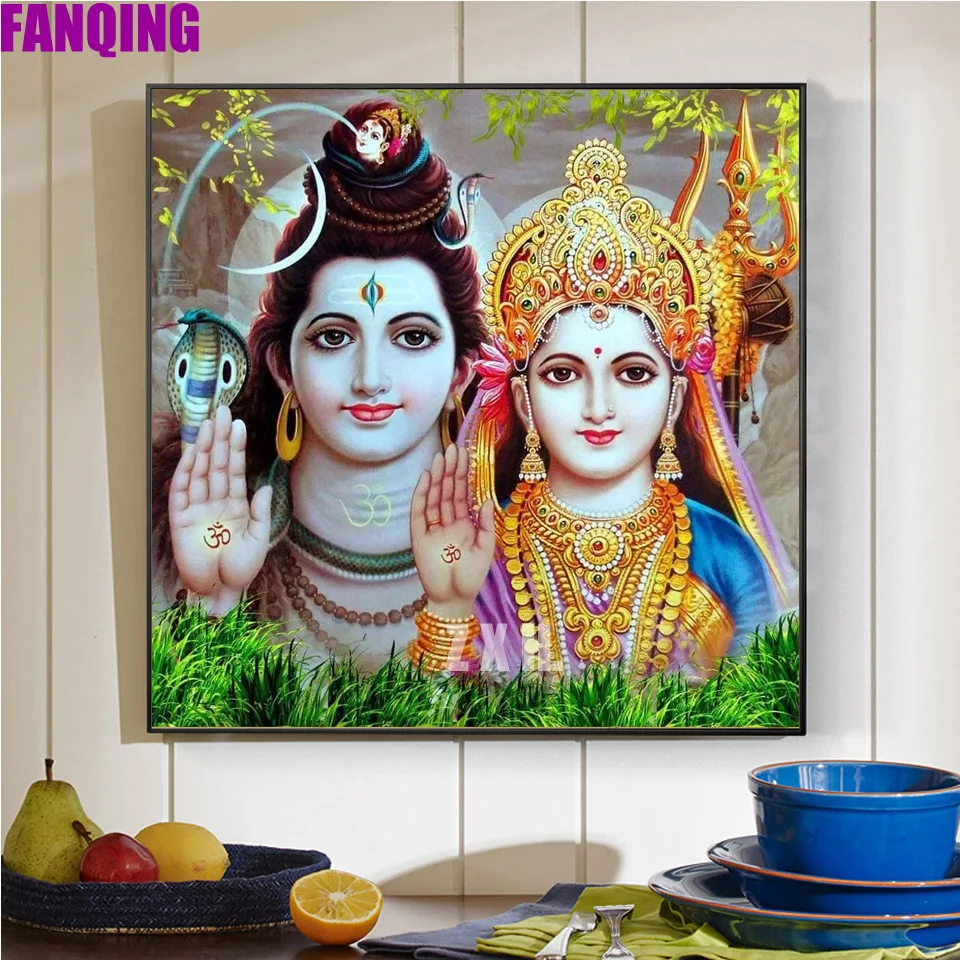 Diy алмазная живопись Shiva Parvati Ganesha, индийское искусство, ф...