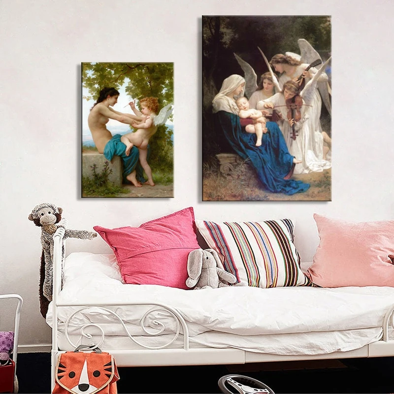 Французские новые классические известные картины Вильям Адольфа бугере песня ангелов холст напечатанный настенный художественный плакат