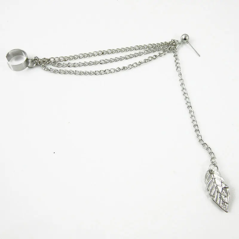 Женские стильные серьги-каффы в стиле панк-рок с цепочкой в виде ли...