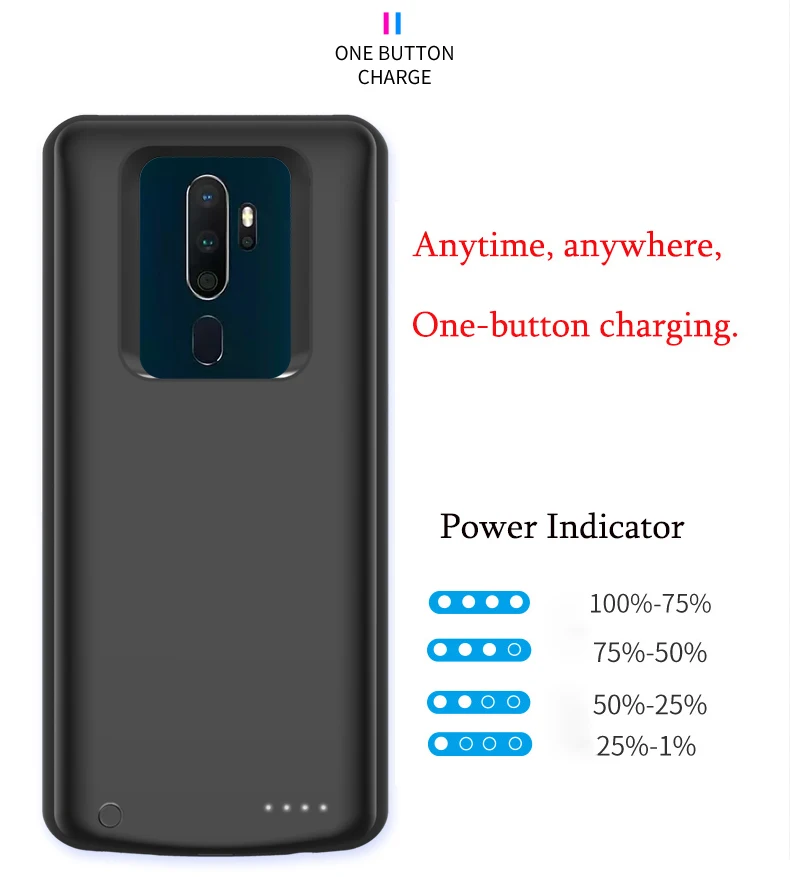 Specification: Capacity:6800mAh input: DC 5V/2A/lighting Output: DC 5V/2A/lighting Charging time: 5-8 hours Net Weight: 150g Model: For OPPO A5 2020/For OPPO A9 2020 Description: 1. Smart Battery (Optimized to lengthen your Phone performance time; No more out of power dilemma during important phone conversations) 2. High-quality Li-polymer Cellphone battery Package including: 1x power pack case cover