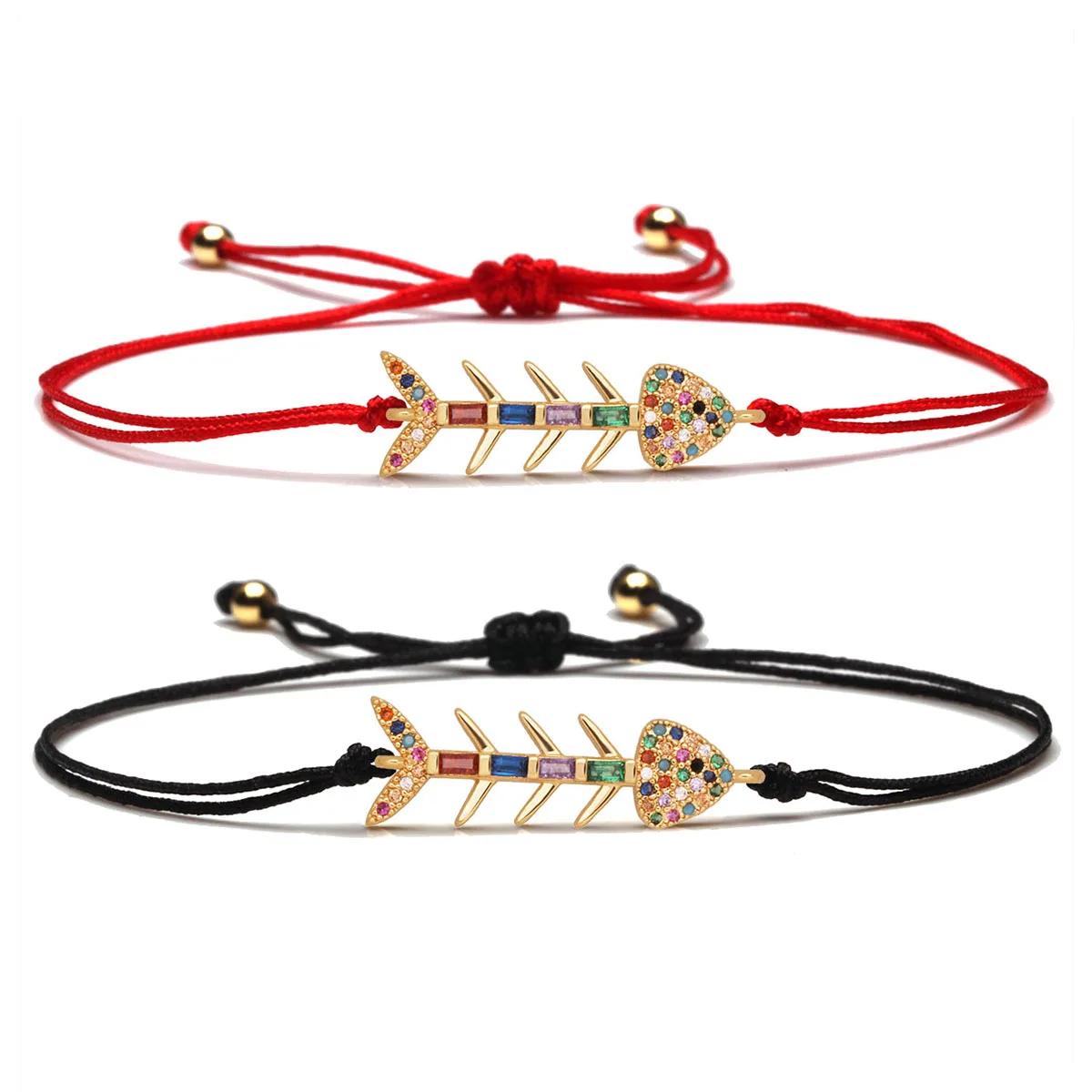 Разноцветный кубический цирконий камни Шарм Рыбная кость браслет Для женщин 2021 Новый CZ Медь Красная Нить морской Lucky Ювелирное Украшение с изображением животных, он
