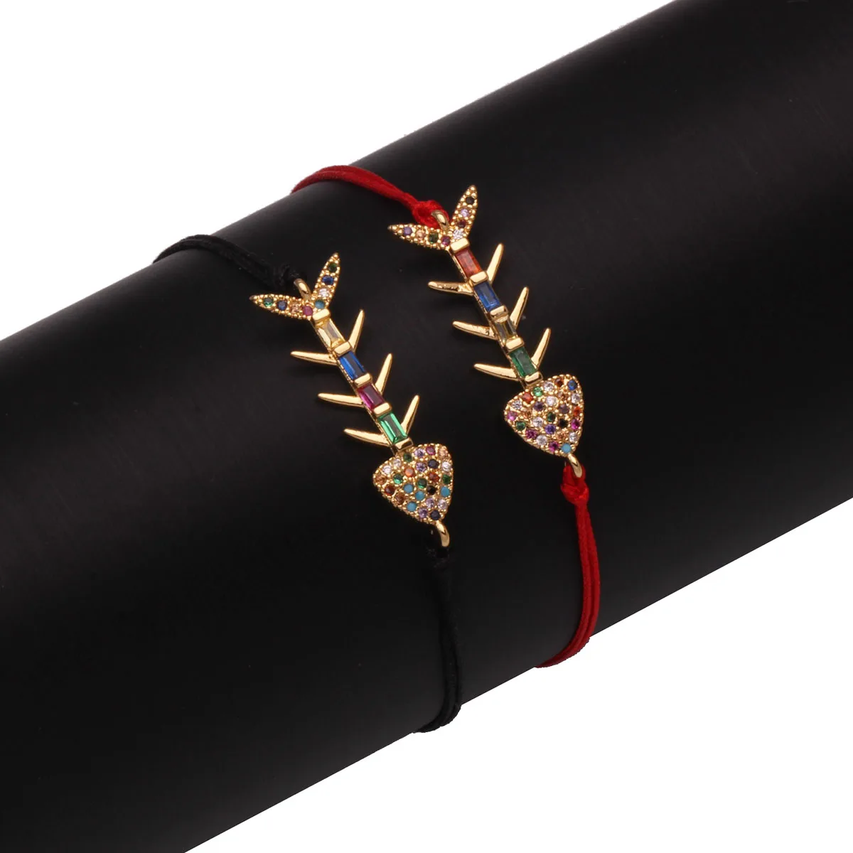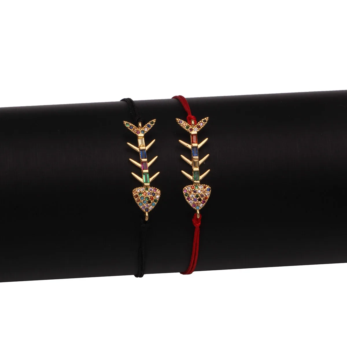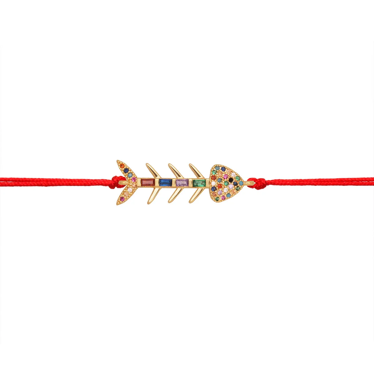 Разноцветные кубические циркониевые камни Шарм «Рыбная кость» браслет для женщин 2021 Новинка CZ Медь красная веревка морская удача животное ювелирные изделия он