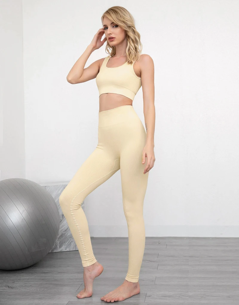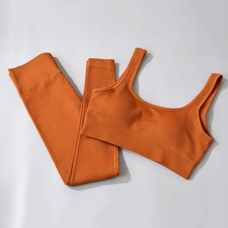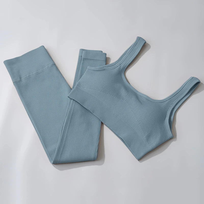 Сексуальный бесшовный Тренировочный Набор с квадратным воротником, спортивная одежда для фитнеса, Женский ребристый комплект из 2 предметов для йоги, тренажерного зала, леггинсов с высокой талией и спортивного бюстгальтера