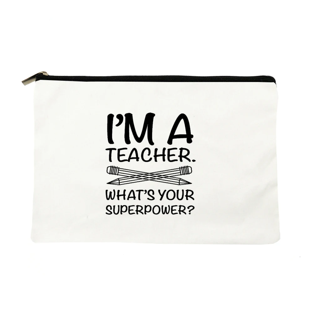 Сумка-Органайзер для косметики с принтом I'm A Teacher What's Superpower для женщин, косметическая сумка парусина, на молнии, для путешествий