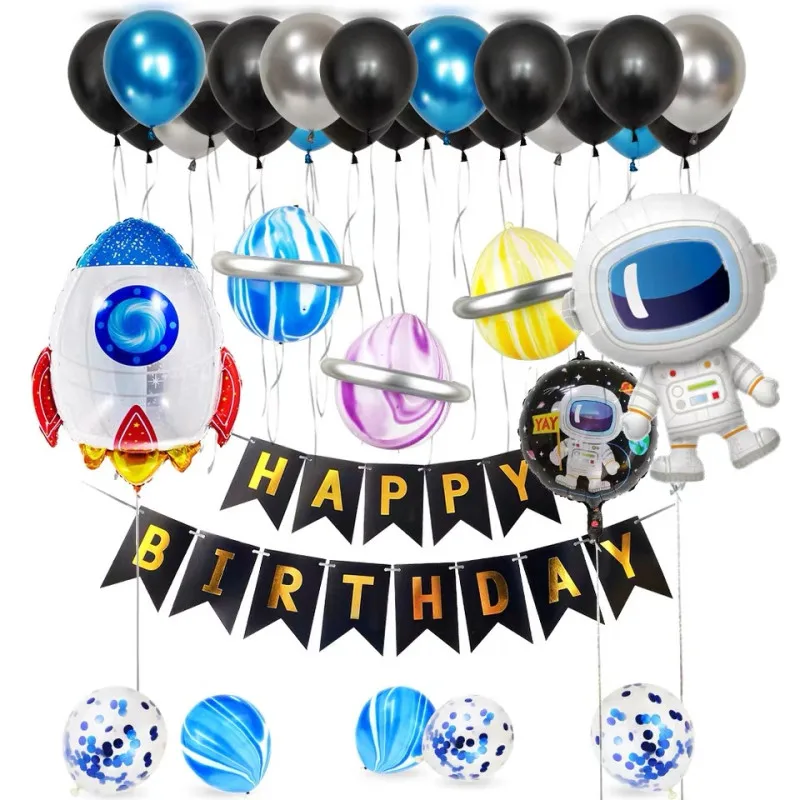 Космический астронавт галактика тема шар Хром Металл Серебро космическая планета астронавт Roket воздушный шар Мальчик День рождения украшение