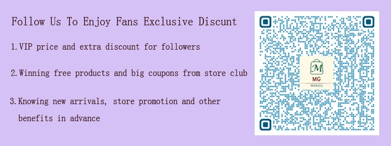 Следуйте за нами, чтобы насладиться фанатамиЭксклюзивная скидка1.VIP Цена и дополнительная скидка для подписчиков2. Зная Новые поступления, Продвижение Магазина3. Выигрышные бесплатные продукты или Большие Купоны и другие преимущества заранее
