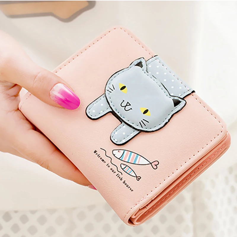 Кошелек женский из искусственной кожи, с мультяшным котом