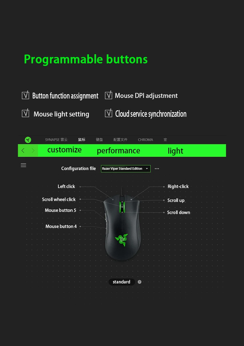 1. Истинный 6400 DPI оптический датчик.