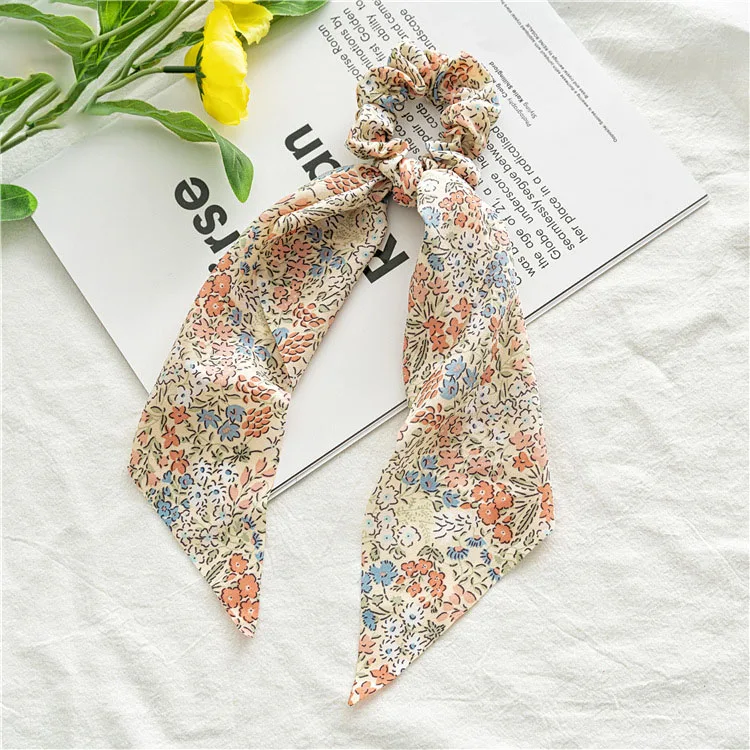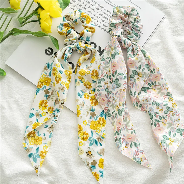 Резинка для волос во французском стиле, шифоновая, с цветами, для винтажных аксессуаров, весна-лето, 2021