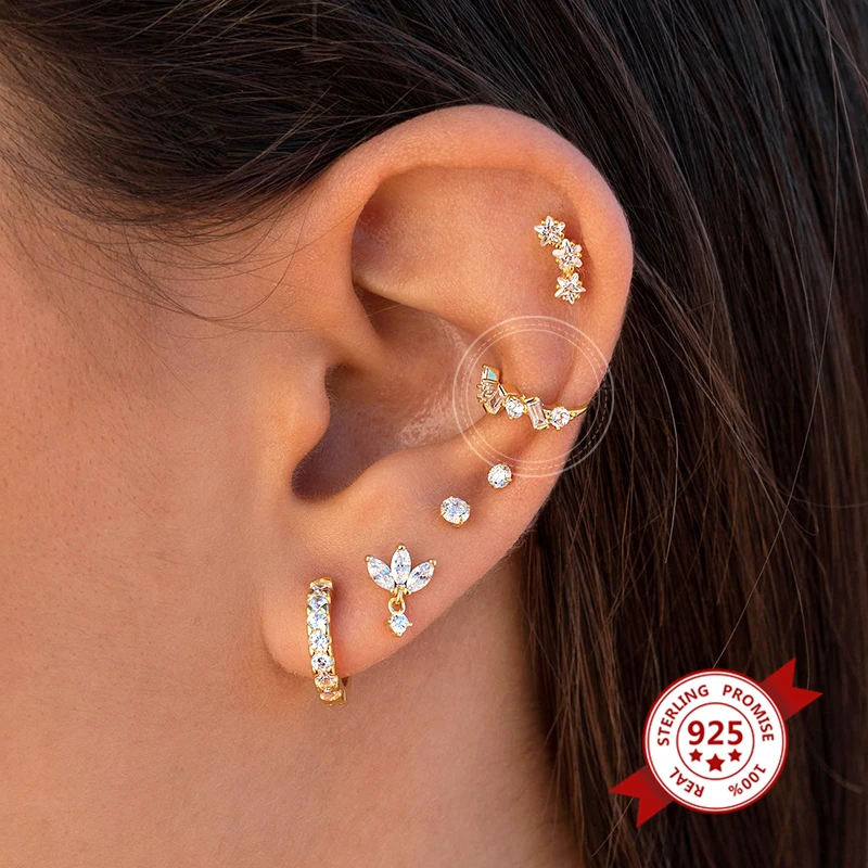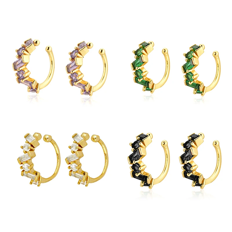 CCFJOYAS 1 пара простой 925 стерлингового серебра циркониевый зажим на серьги для женщин белыйфиолетовыйчерныйзеленый золотой цвет клипсы