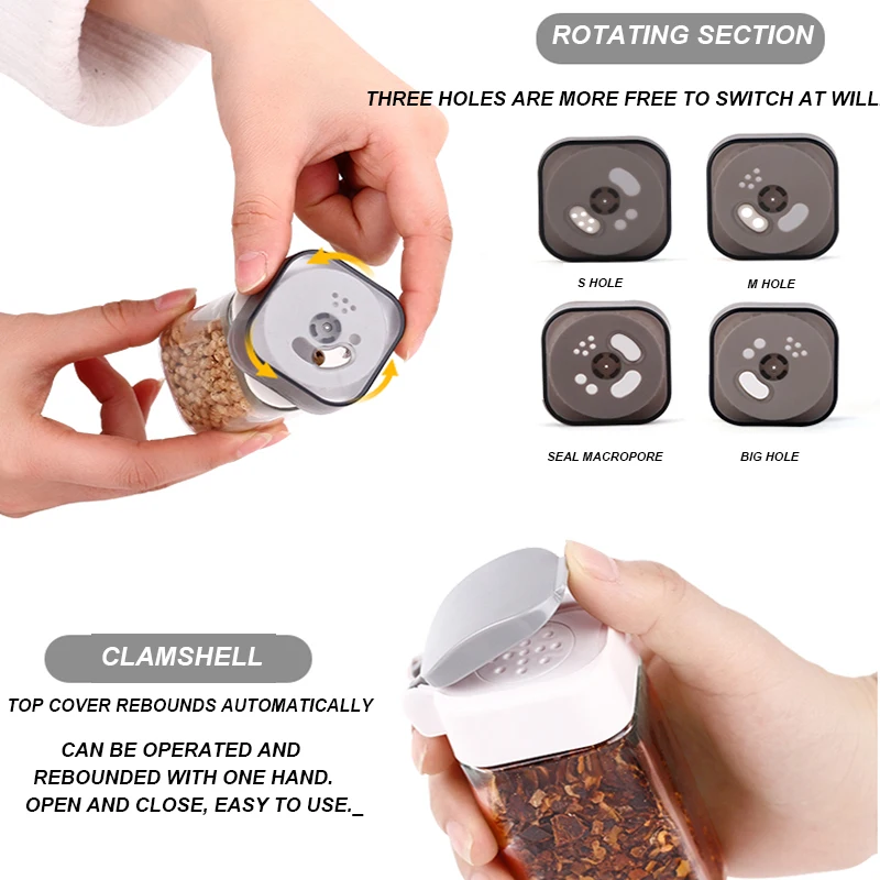 Эффективный-Благодаря скручивающейся крышке легко заполнять и плотно закрывать, поэтому вам не придется беспокоиться о том, что ваши специи высохнут. Идеально подходит для хранения свежих трав или приправ. Каждая бутылка для специй имеет 3 различных вида отверстий, поэтому она будет распределяться должным образом и не засорится с вашим выбором специй.