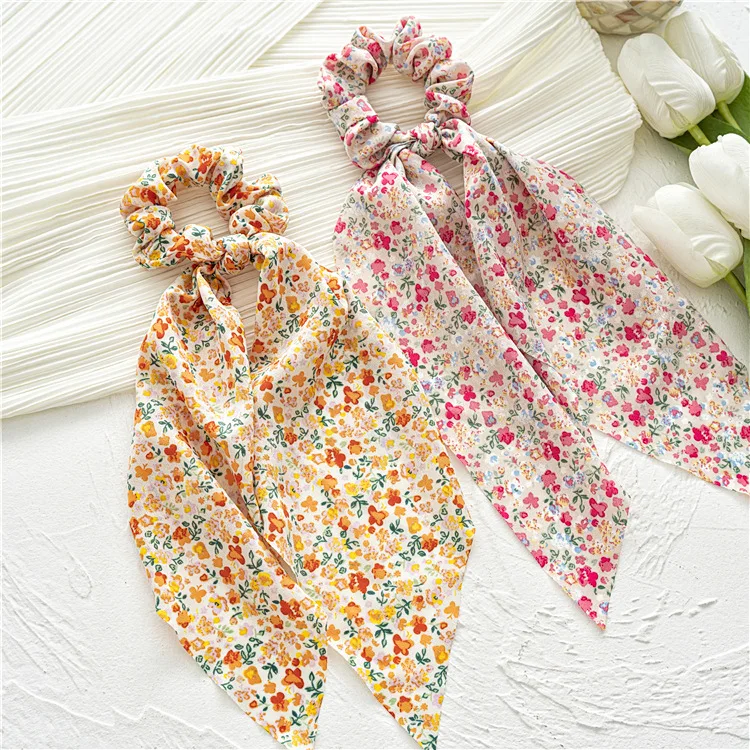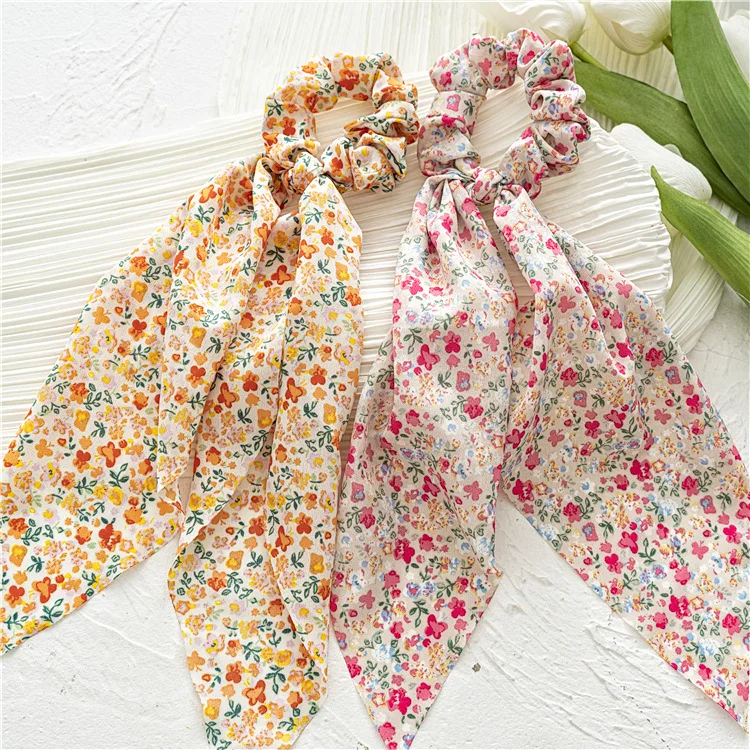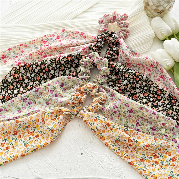 Новинка; Милый рисунок цветы Рубан галстук-бабочка из женский хвостик деревня Стиль резинка для волос Chouchou с лентой милые аксессуары