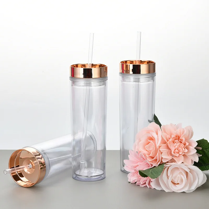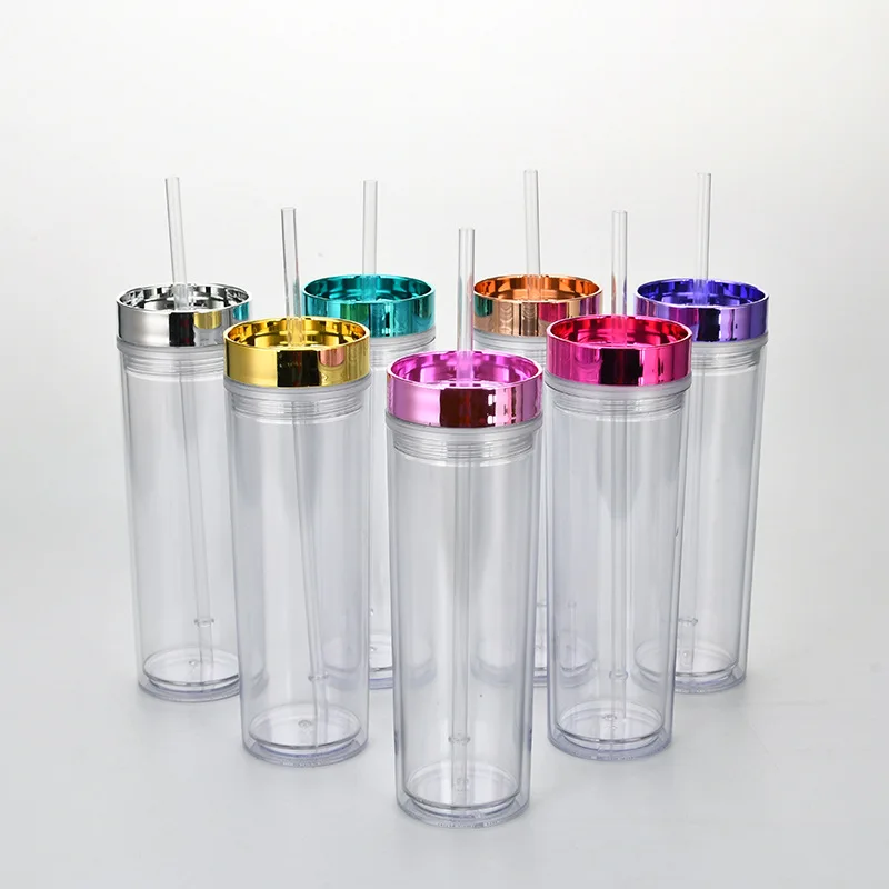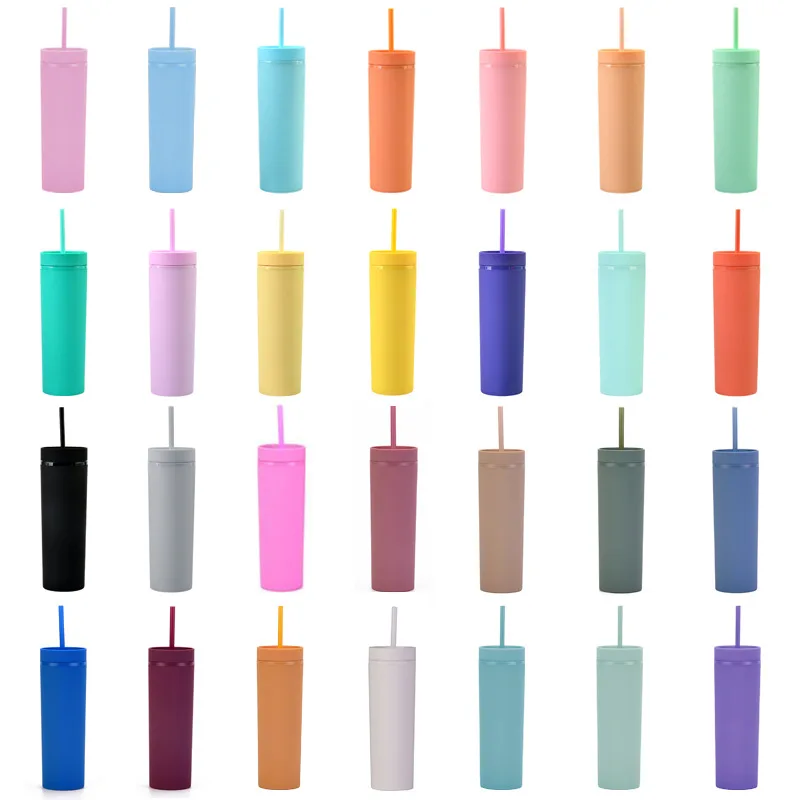 2021 Лидер продаж Радужный цвет двойная стена матовая отделка многоразовый тонкий 473 мл16 унций пластиковый стакан с соломинкой