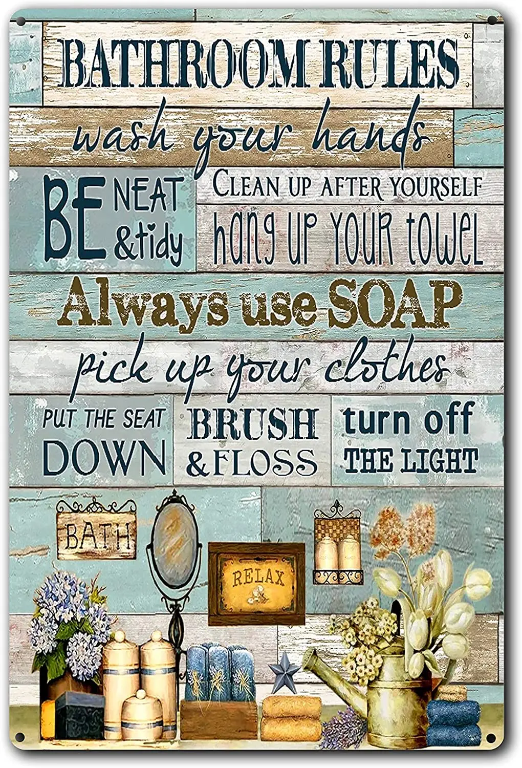 Декоративные знаки правила ванной комнаты, декор для умывальника, художественные знаки, потертый шик, настенный плакат для домашнего декора