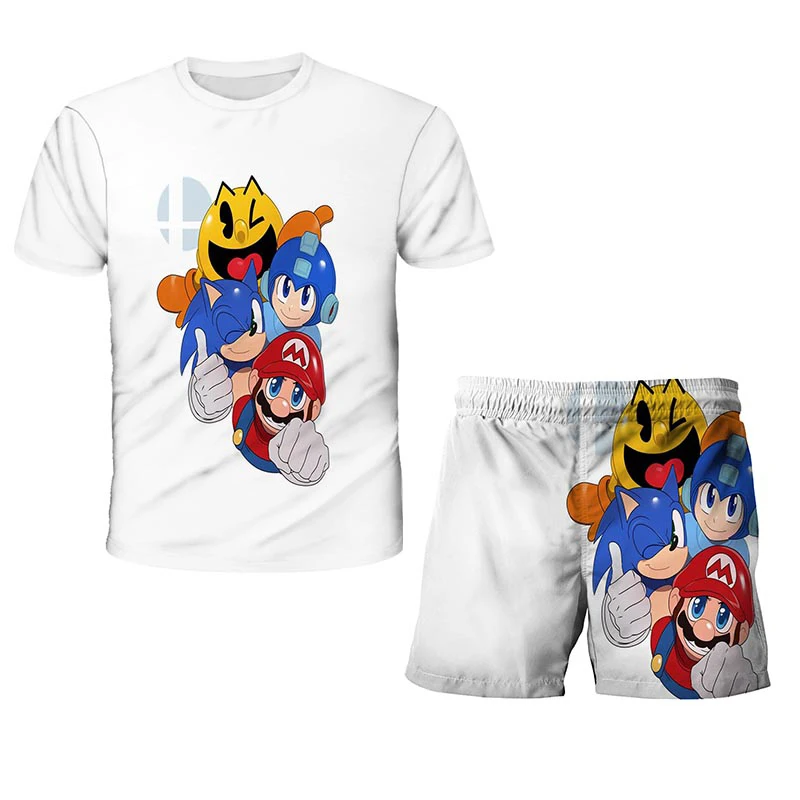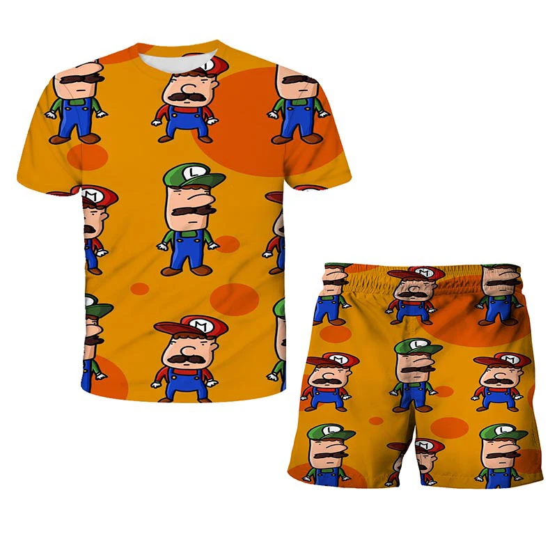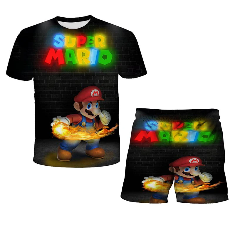 3D с принтом Марио 2021 летняя одежда для мальчиков детская футболка + шорты, комплекты для маленьких мальчиков с изображением героев мультфильмов; Детская Марио комплекты модной От 4 до 14 лет