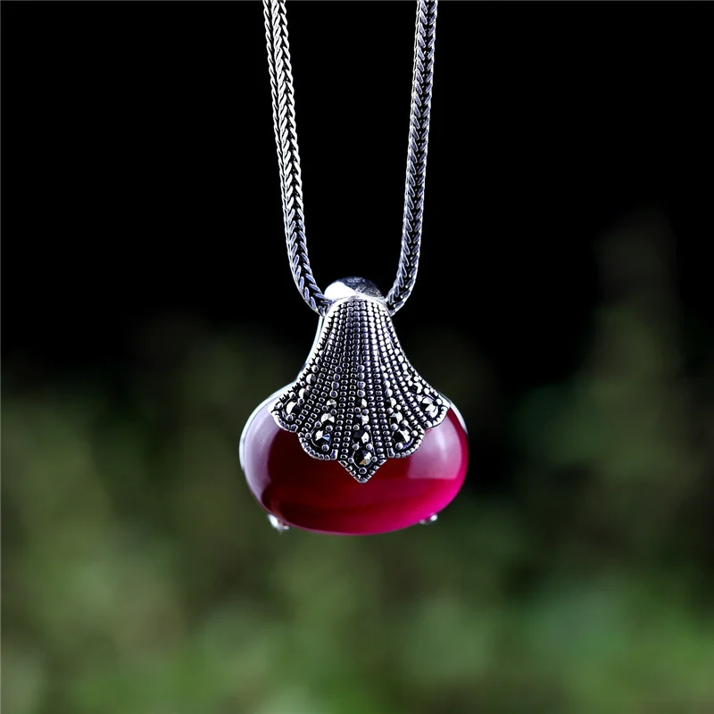 Uglyless тайское серебро винтажные подарки марказит подвески ожерелья для женщин Экзотические ожерелье с халцедоном 925 серебряные ювелирные изделия драгоценные камни не цепь
