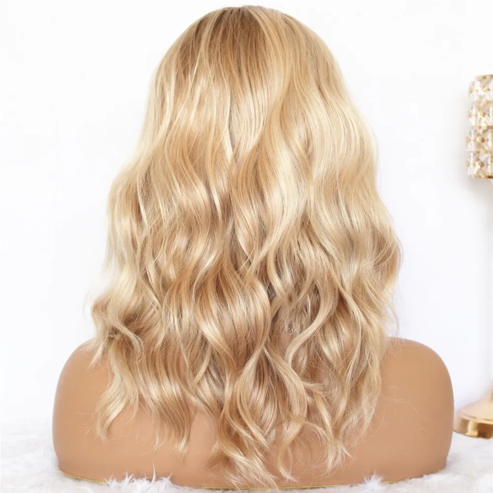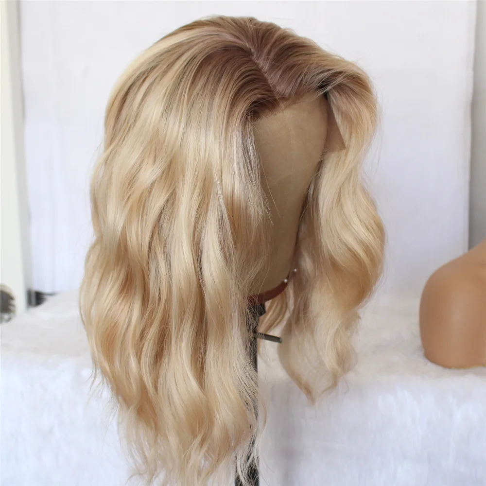 Парик Омбре для женщин, термостойкие светлые натуральные волнистые синтетические на сетке, короткие, с короткими волосами, 14 дюймов, с темными корнями, средней длины