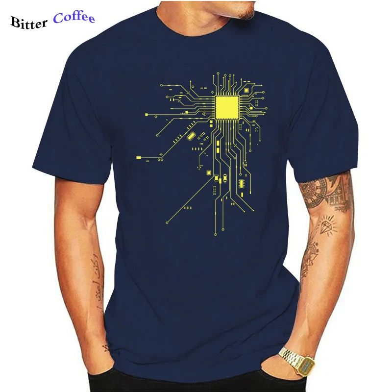 Футболка мужская с принтом, Модная хлопковая тенниска с схемой процессора, повседневная спортивная майка