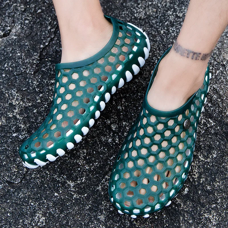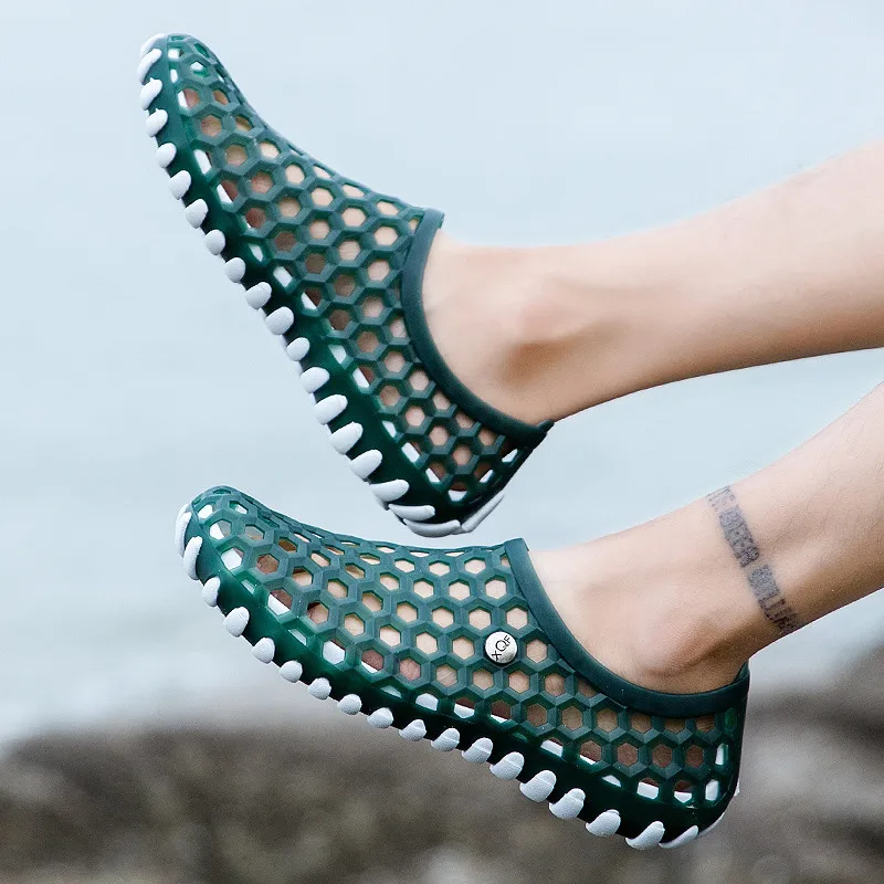 2021 летние мужские пляжные садовые туфли унисекс, уличные дышащие мужские повседневные туфли из гелевого пластика, слипоны, мужские водные туфли, аквапары, зеленые