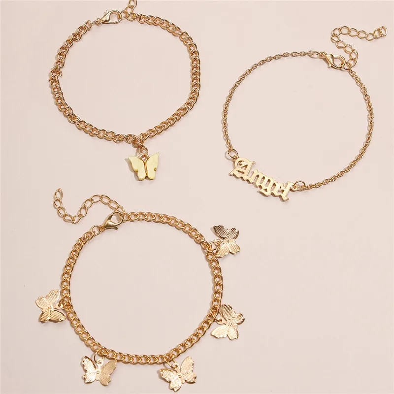2022 новый модный набор милых ножных браслетов Modyle 3 шт.компл. с бабочками для женщин, богемный браслет на щиколотку с цепочкой, ювелирные изделия