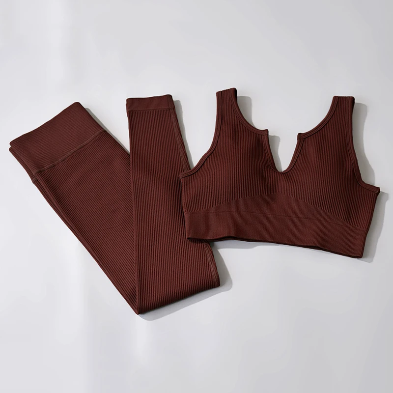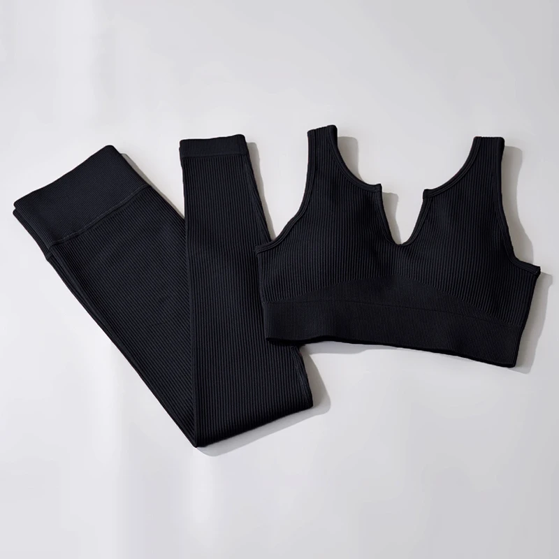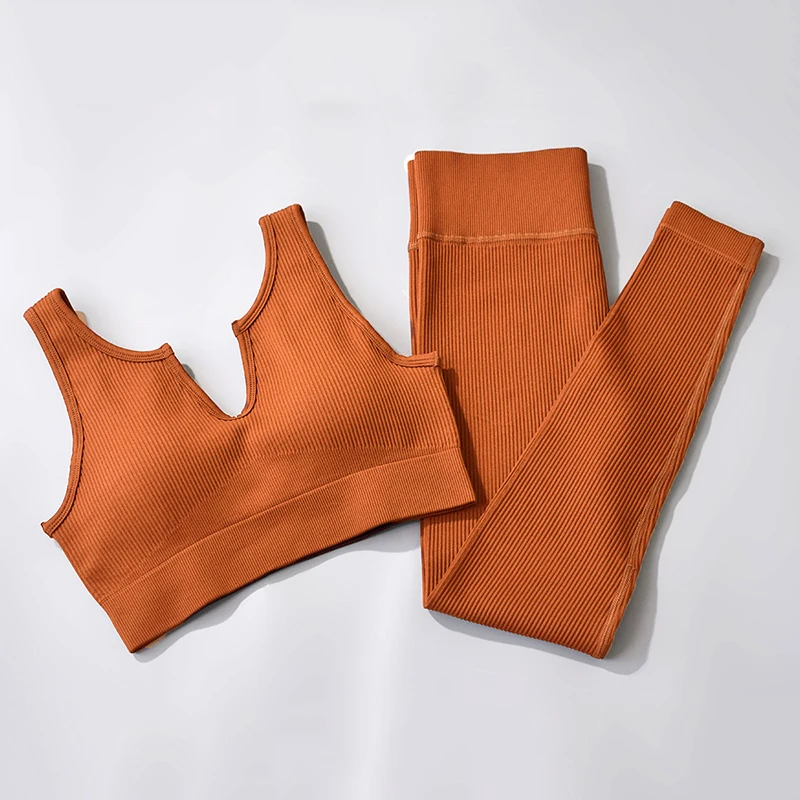 Бесшовный комплект для йоги в рубчик, женская спортивная одежда, одежда для фитнеса, леггинсы для тренировок с высокой талией, спортивный бюстгальтер, топ, спортивный костюм, комплекты для спортзала