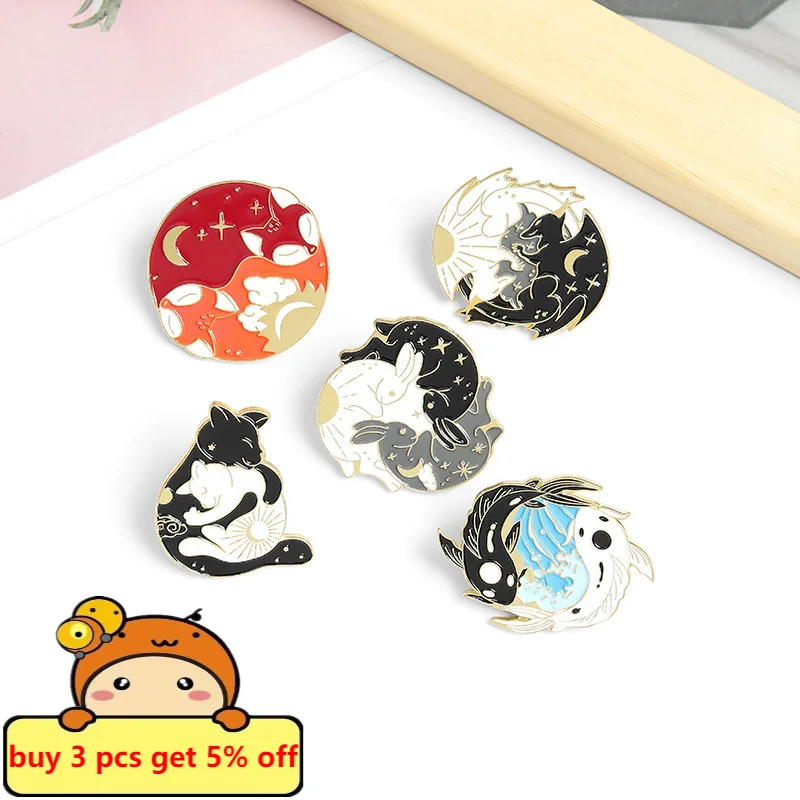 Эмалированная заколка Инь Янь, заколка на лацкан с изображением жив...