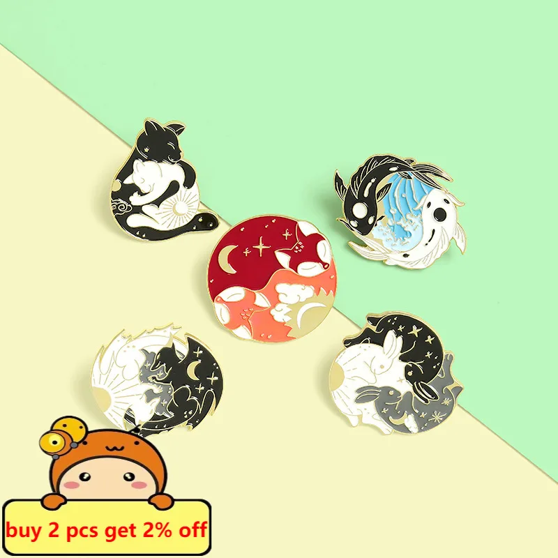 Новые эмалированные Броши Taichi с животными, два черных, белых кот...