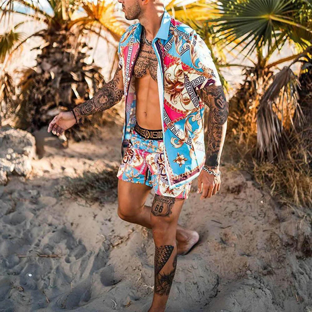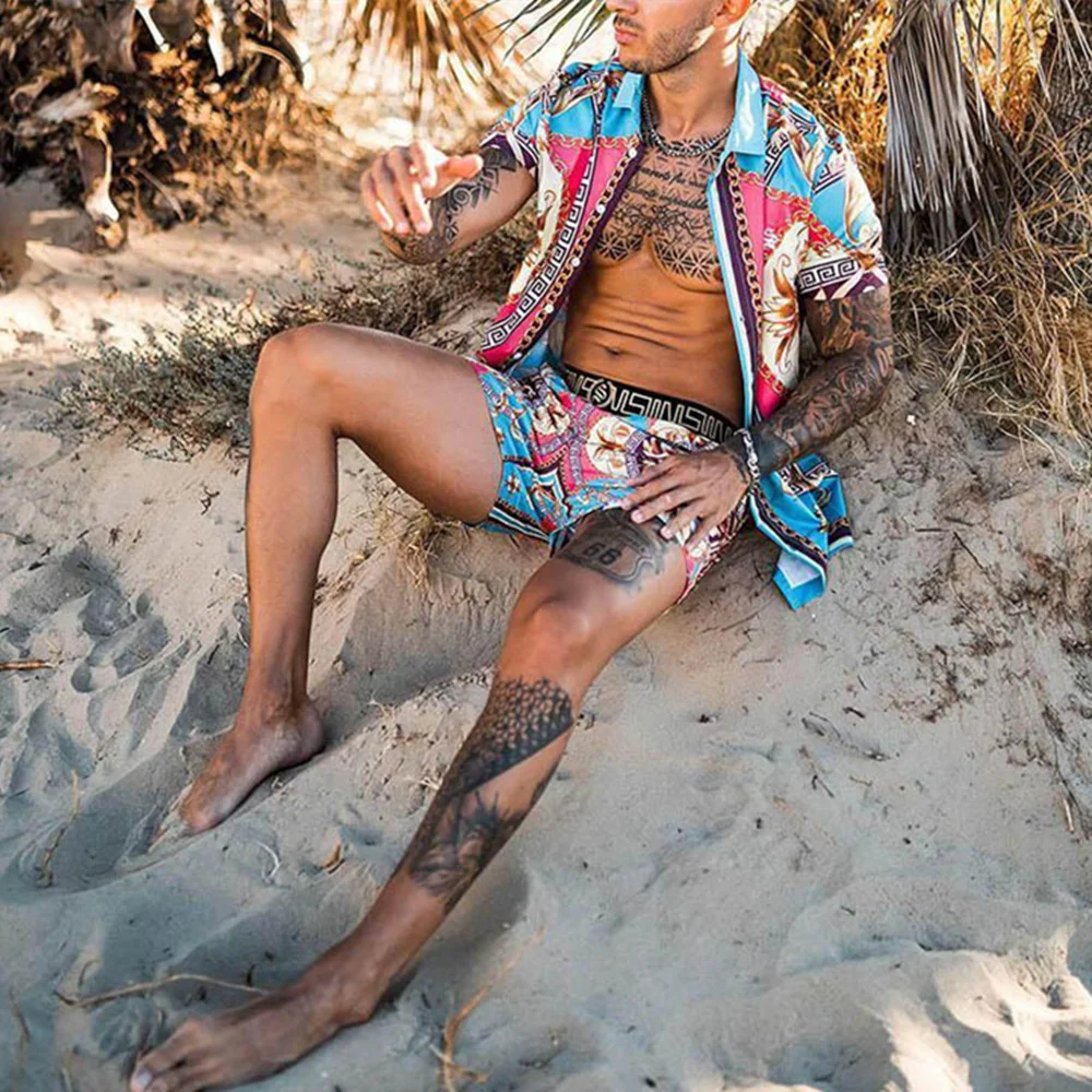 2021 новый модный Гавайский Мужской комплект с принтом летние шорты...