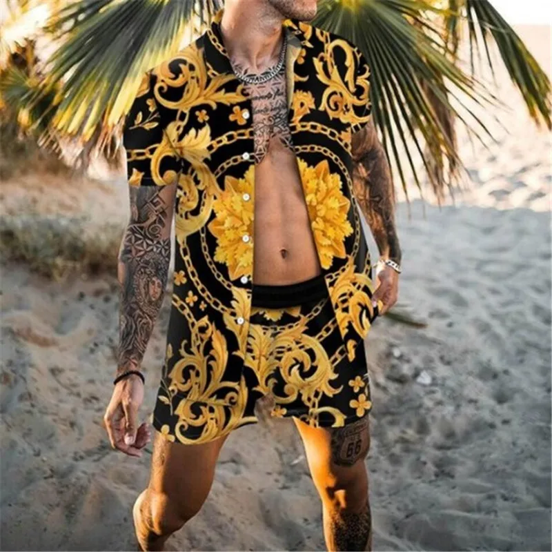 2022, Модный комплект рубашки с гавайским принтом и короткими рукав...