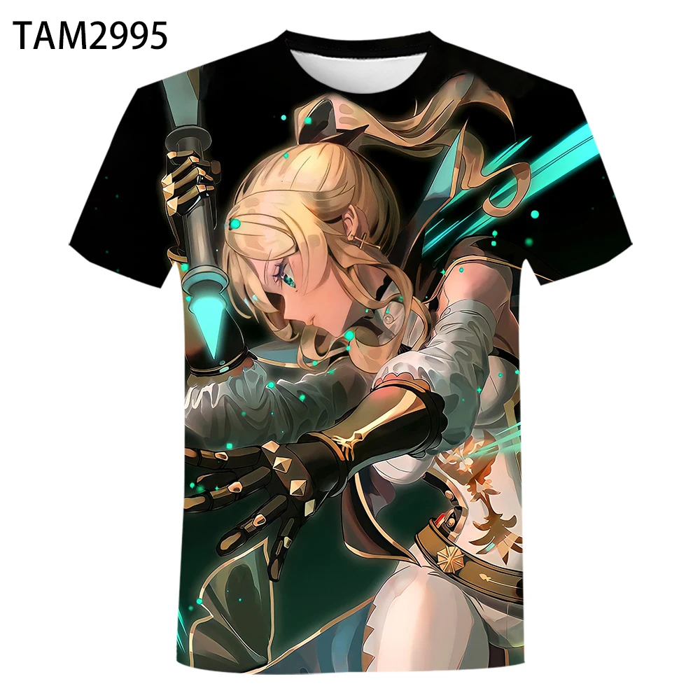 2021 модная футболка с японским аниме Genshin Impact 3d, повседневн...
