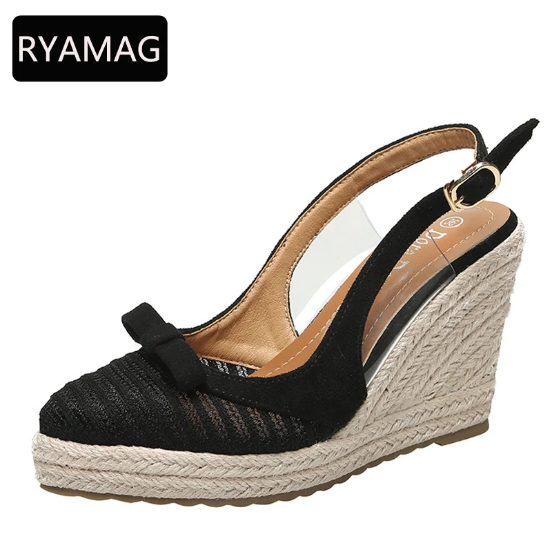 RYAMAGженские эспадрильи на танкетке; Новинка 2021 года; Тонкие туфли с бантом; Женские модные туфли с острым носком на высоком толстом каблуке; Соломенная подошва