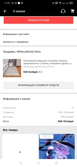Коврик продавец отправлять не стал, заказ автоматически закрылся, AliExpress вернул деньги.