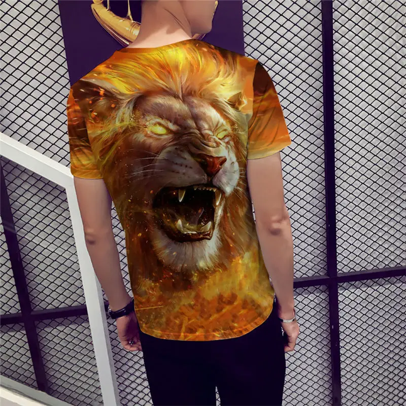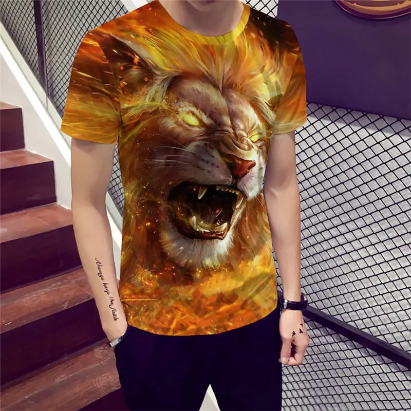 Мужская футболка с 3D-принтом льва, Повседневная футболка с круглым...