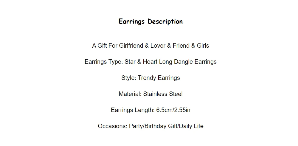 Модные длинные висячие серьги из нержавеющей стали со звездами и сердцами для женщин, маленькие серьги-кольца из розового золота, подарок для девушек, бижутерия для женщин