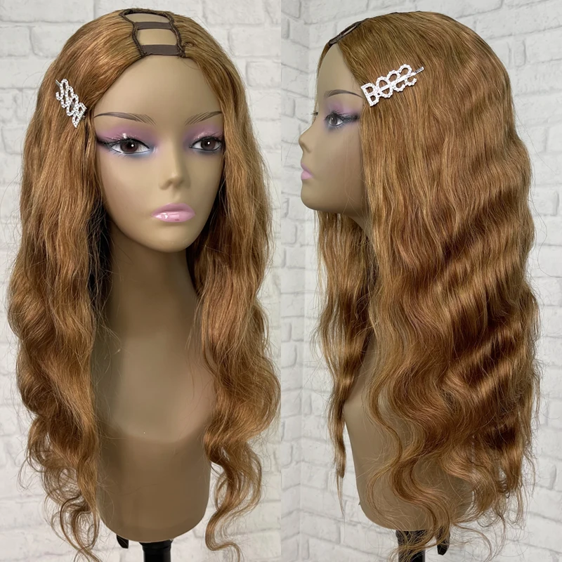 Парики из натуральных волос, медовая блондинка, хайлайтер, U-образный парик, 1x4 дюйма, волнистые бразильские волосы без повреждений, U-образные парики с эффектом омбре для женщин, средняя часть