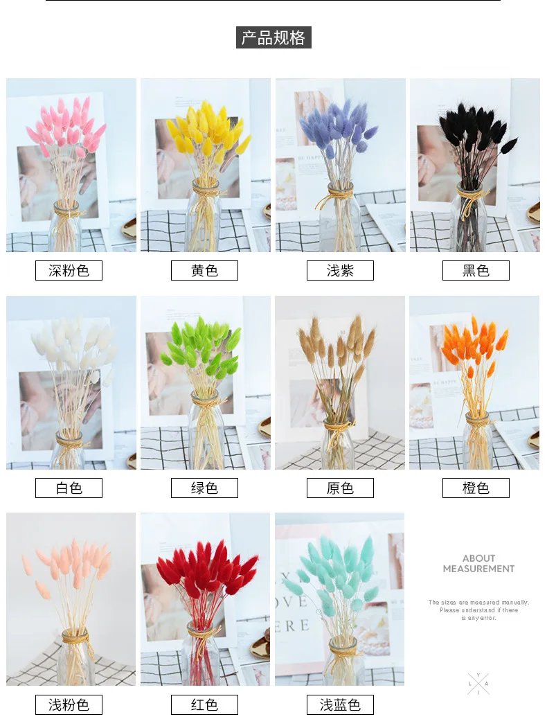 Сушеные цветы, 20 шт., натуральные, 55 см, с кроличьим хвостом