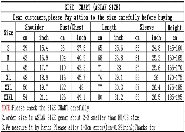 2. Мы используем Азиатские размеры, Пожалуйста, измерьте размер в соответствии с одеждой, которую они обычно носят (а не с телом), перед покупкой сверьтесь с таблицей размеров ниже, если замеры находятся между двумя размерами, советуем выбрать больший размер. Если она не уверена в размере, пожалуйста, оставьте мне сообщение о ее весе и росте, я могу дать им предложение.