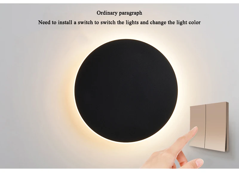 Круглый светодиодный настенный светильник современный сенсорный выключатель в простом стиле для гостиной, спальни, украшения черный, белый цвет бра крытый светильник ing абажур