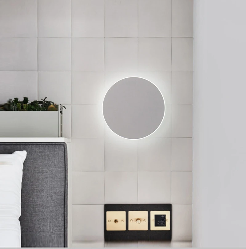 Круглый светодиодный настенный светильник, современный настенный светильник с сенсорным выключателем для гостиной, спальни, украшения, черный, белый Настенный бра, Домашний Светильник