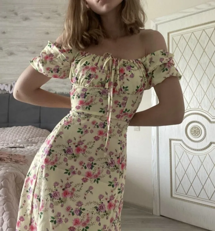 Женское длинное платье с цветочным принтом, летнее Праздничное Платье макси с пышными короткими рукавами, элегантное платье для клуба