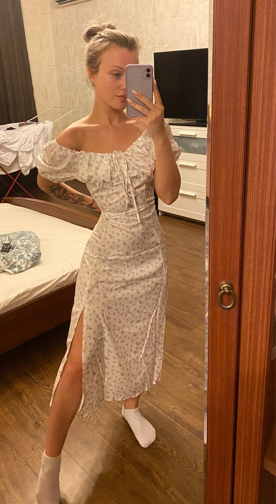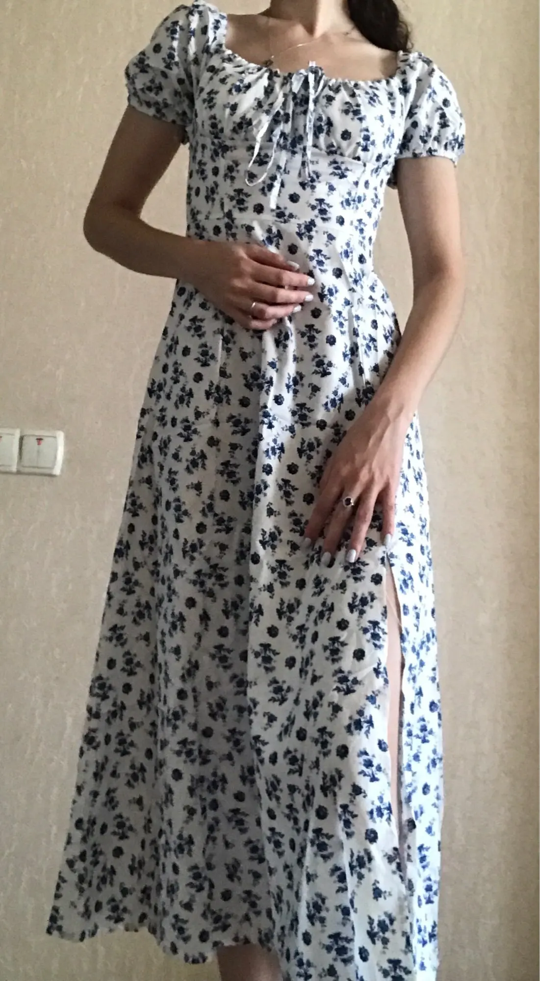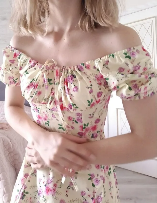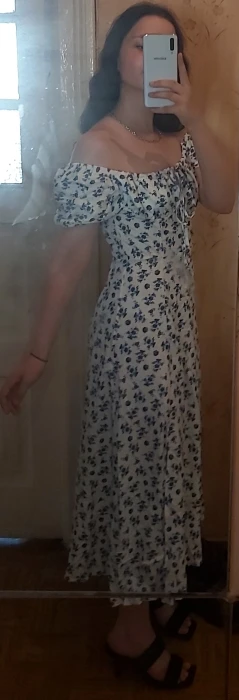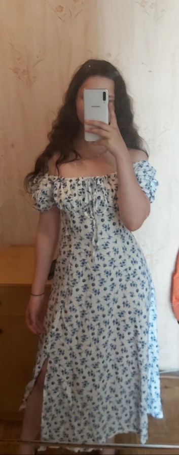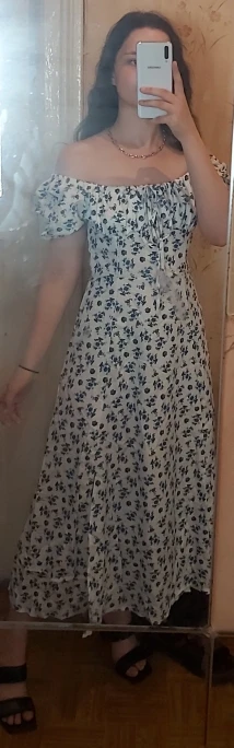 Доставка очень быстрая ,но! Платье огромное.Размер С на параметры 86/61/94 висит,как на вешалке.На фото собрала сзади и чуть подняла по длине,ушивать см 20 точно,удивлена,если честно,так как в других отзывах девочки вроде тоже худенькие.Рост 158,буду укорачивать на 10 см. А,и ещё по поводу груди,у меня широкая спина,но грудь маленькая,лучше поддевать вниз лиф без бретелей или силиконовый - будет лучше смотреться.Само платье оч легкое и нежное,думаю легко будет просвечиваться.Но очень романтичное,для лета и прогулок самое то ;)))