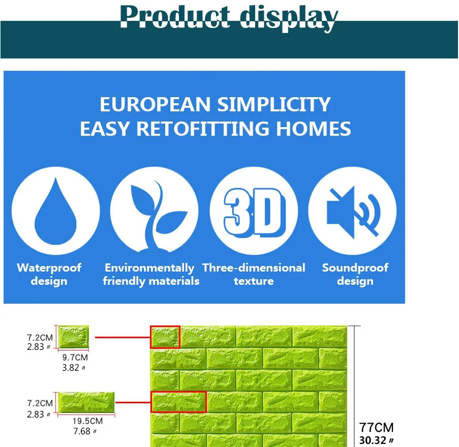 Материал: водонепроницаемый PE пенопластовый кирпич шаблон наклейки на стенуМетрический Размер: 70 см X 77 см X 4 смХарактеристика:1: трехмерная декоративная мягкая пена, анти-столкновения для детей, безопасный семейный уход.2: Безопасность и защита окружающей среды, нетоксичный запах, подходит для семейного домашнего безопасного пространства.3: реалистичный эффект натурального кирпича, простой и современный стиль.4: Бесплатный DIY, простой самоклеящийся дизайн, установка, неформальный коллаж, произвольный крой.5: обои по сравнению с улучшенным эффектом шумоподавления.Внимание: пожалуйста, купите достаточно штук за раз, чтобы убедиться, что они приходят из той же партии, чтобы избежать разницы